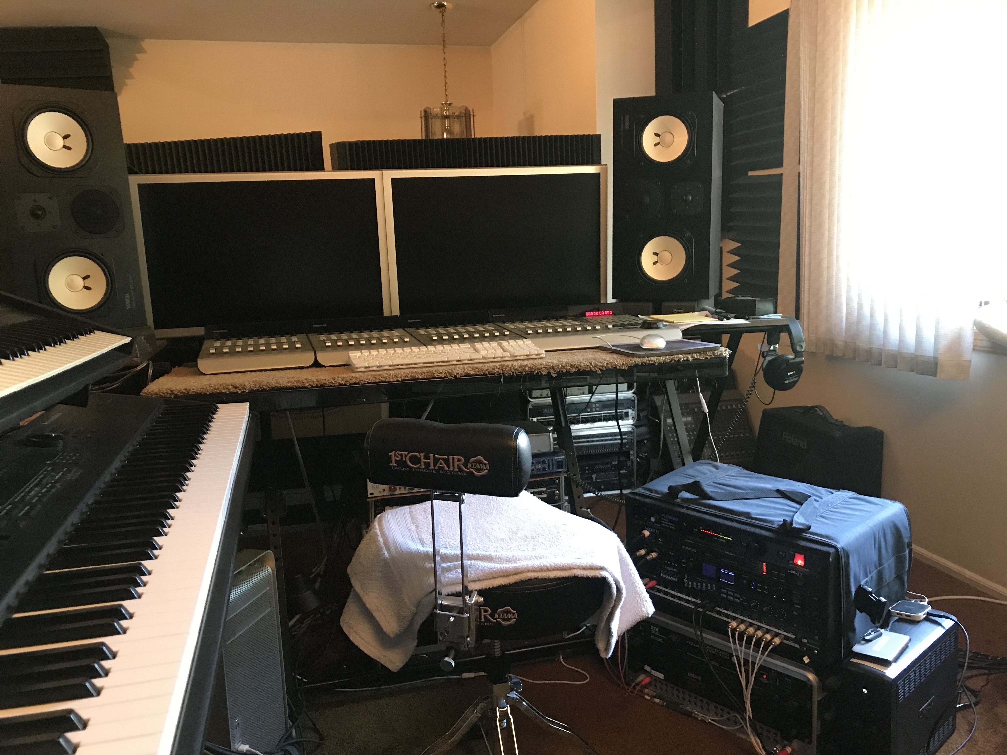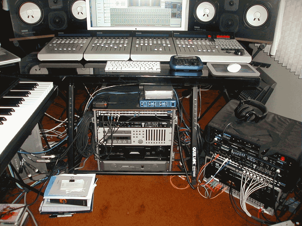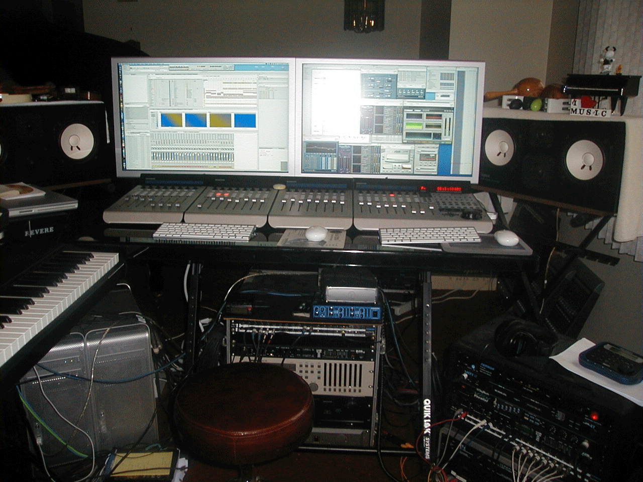 Studio Hardware Apple MAC Pro (24 core/dual 30" cinema + Slate Raven MTI2 displays) Apple MACbook PRO (M2 12 core) Canon HF10 AVCHD video camera Focusrite Clarett+ 8pre audio interface MOTU 828es audio interface MOTU Midi Express Xt (8 port interface) Digitech Midi Vocalist Conover Cable Baby Grand Piano Kurzweil K2000 Kurzweil PC88mx Yamaha CP80 Yamaha YPG545 Yamaha KX5 Tascam DA38/MMC38 Digital 8-Track Recorder Tascam 102MKII Cassette recorder Samson HP4 headphone amplifier Slate VXS headphones Sony, AKG headphones Slate VSM ML1 and ML2 microphones Rode, AKG, Shure, Blue microphones Neve Portico 5012 Microphone preamp Yamaha P2050 Stereo amplifier Samson Server-240 Stereo amplifier Yamaha NS40M near-field monitors Tannoy TS-10 sub woofer Community CSX35 PA speakers Aurelex Sound Proofing Power conditioning/Patchbays Midi/Audio switches
