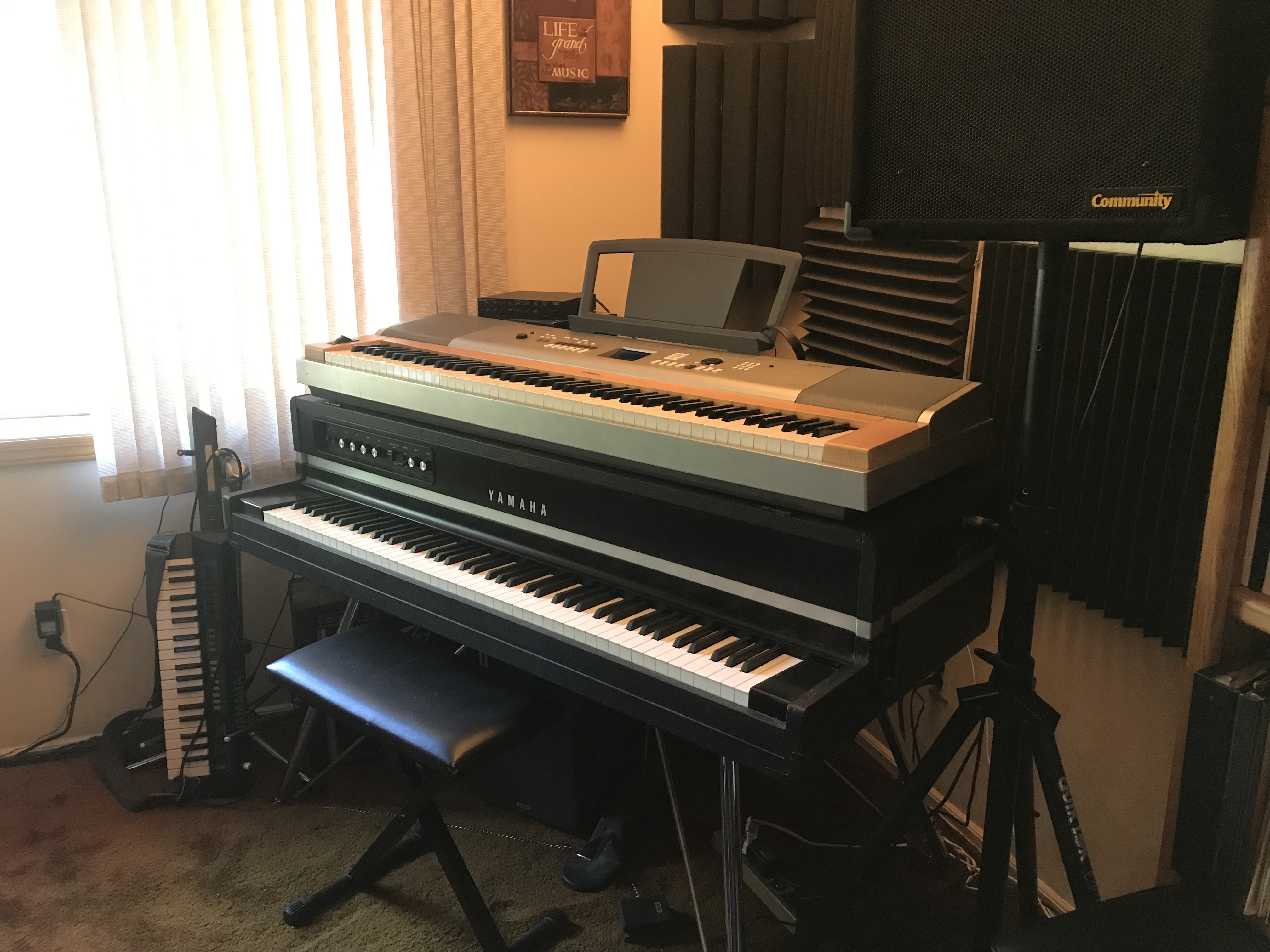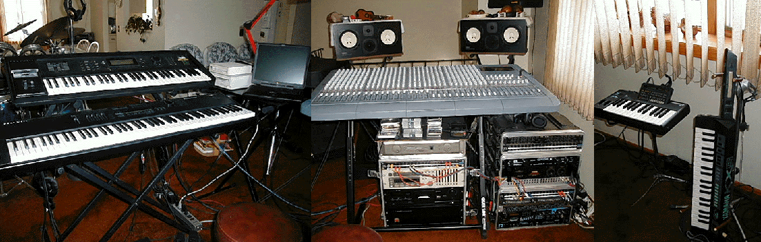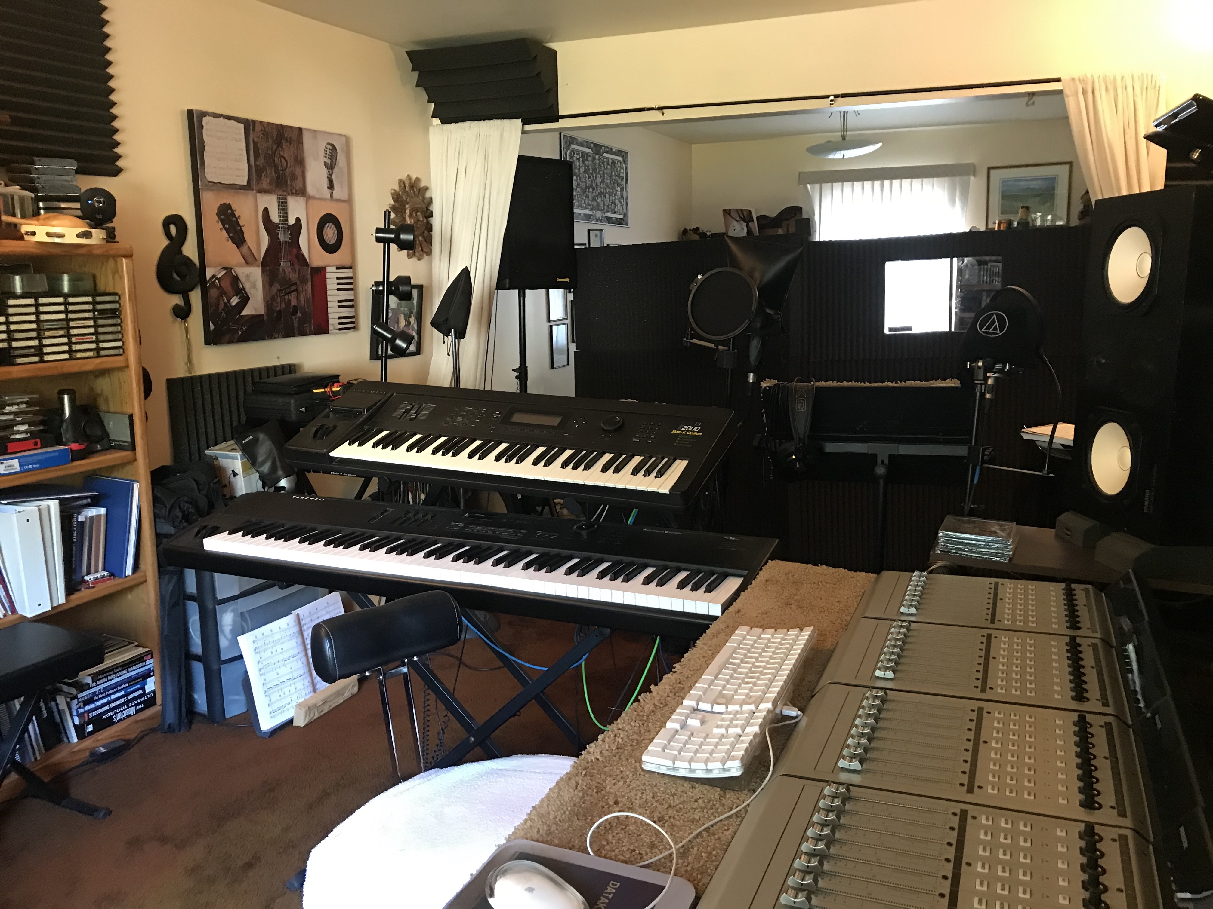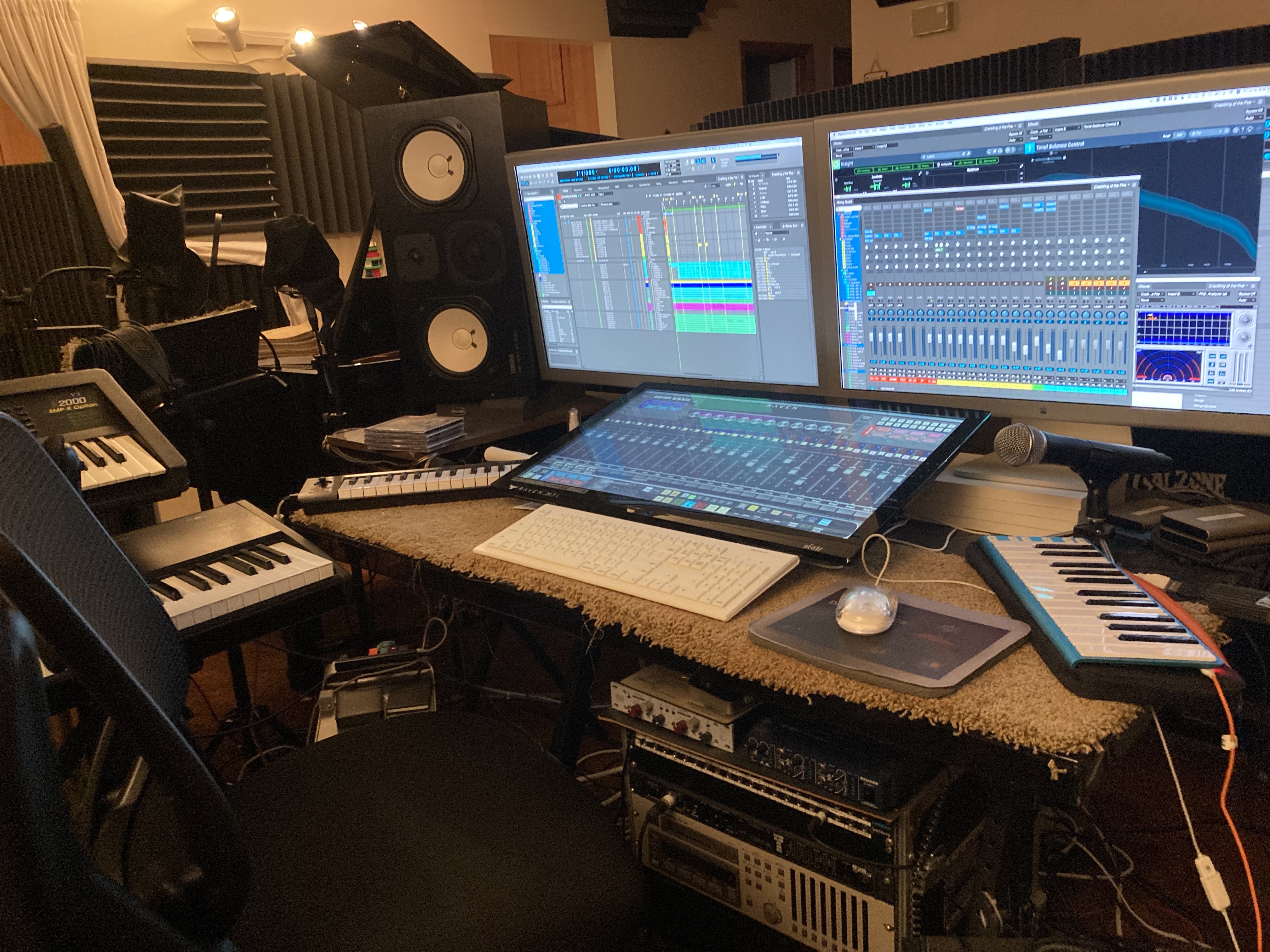 Studio Hardware Apple MAC Pro (24 core/dual 30" cinema + Slate Raven MTI2 displays) Apple MACbook PRO (M2 12 core) Canon HF10 AVCHD video camera Focusrite Clarett+ 8pre audio interface MOTU 828es audio interface MOTU Midi Express Xt (8 port interface) Digitech Midi Vocalist Conover Cable Baby Grand Piano Kurzweil K2000 Kurzweil PC88mx Yamaha CP80 Yamaha YPG545 Yamaha KX5 Tascam DA38/MMC38 Digital 8-Track Recorder Tascam 102MKII Cassette recorder Samson HP4 headphone amplifier Slate VXS headphones Sony, AKG headphones Slate VSM ML1 and ML2 microphones Rode, AKG, Shure, Blue microphones Neve Portico 5012 Microphone preamp Yamaha P2050 Stereo amplifier Samson Server-240 Stereo amplifier Yamaha NS40M near-field monitors Tannoy TS-10 sub woofer Community CSX35 PA speakers Aurelex Sound Proofing Power conditioning/Patchbays Midi/Audio switches